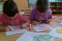 Балалар белән тозларны төрле төсләргә буядык.Һәм төсле тозлар белән рәсемнәрне бизәдек. Эшләгән эшебез бик матур килеп чыкты.