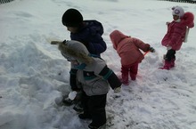 Нихаять кар яуды. Без суыктан курыкмыйбыз. Үзебезнең кечкенә көрәкләребезне алып урамга саф һава суларга, кышкы табигать белән танышырга чыктык.
