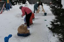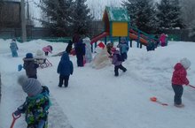 Әти-әниләр катнашында мәйданчыкта кар сыннары ясадык. Мәйданчыгыбыз әкият геройлары белән баеды. 18.12.2017