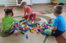 1 нче кечкенәләр төркеме балаларының конструктор белән уйнаулары. Максат: балаларның мөстәкыйль рәвештә конструктор төзүләре; аларның уйлау сәләтләрен үстерү; бер-берсе белән дустанә мөнәсәбәттә, уенчыкларын бүлешеп уйнауларына ирешү.
