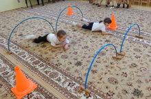 Максат:Предметлар арасыннан урап шуышу.Тизлек,көч,чыдамлылык сыйфатларын үстерү.