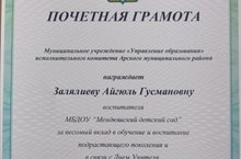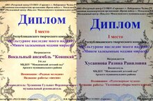 Воспитатель нашего детского сада Хусаинова Р.Р. и музыкальный руководитель Хусаинова Г.Ф. приняли участие в Республиканском творческом конкурсе "Культурное наследие моего народа" и заняли почетное 1 место! Поздравляем и желаем дальнейших побед!