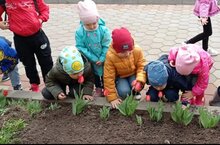 Балалар белән урамга чыккач, иң беренче эш итеп, бакчабыздагы беренче чәчәкләргә күзәтү ясадык. Бу чәчәкләр - лалә чәчәкләре. Алар матур булып ачылып киләләр, шундый матур, ачык төсләрдә. Лалә чәчәкләре бакчабызга ямь биреп торалар.