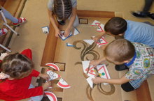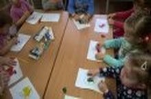 Пластилиннан кечкенә кисәкләр чеметеп алырга һәм аларны ябыштырырга өйрәтүне дәвам итү; кызыл, сары, яшел төсләр белән таныштыру.