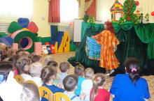 Әлмәт курчак театры балаларга " Рыжик исемле төлке һәм Алина исемле кыз"дигән спектакль күрсәтте. Балалар бик кызыксынып, игътибар белән вакыйгалар агышып күзәттеләр, рәхәтләнеп көлделәр, кул чаптылар, сорауларга җаваплар бирделәр. Спектаклҗ бик матур булды.