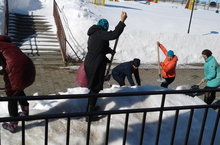Бүген без өмә ясадык. Бакча территориясендәге карларны тараттык.