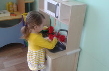 1 нче кечкенәләр төркеме. Максат: Табиб һөнәре белән таныштыру. Табибка кирәк булган уенчык эш коралларын карау. Иҗади эшчәнлек вакытында балаларның табиб булып уйнауларын күзәтү.