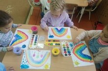 Максат: 1.Балаларны акварель буявы һәм аның үзенчәлекләре белән таныштыру:су белән катыштырып, төсләрнең ачыграк тоннарын булдыру.