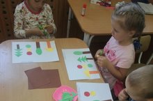 Тарату материалы: әзер детальләр белән конвертлар, (светофор,агач, чыршы, кояш һ.б.), төрле төстәге кәгазь , альбом бите, клей, салфетка. (һәр балага)