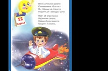 12 нче апрель - Космонавтика көне уңаеннан ,зурлар Һәм мәктәпкә хәзерлек төркеменә йөрүче балалар белән галәм киңлекләре турында сөйләшенде.Балалар рәсемнәр аша планета исемнәре белән һәм иң беренче очучы Ю.А. Гагарин белән таныштырылды.Йомгаклау уңаеннан балаларның кул эшләреннән торган күргәзмә оештырылды.