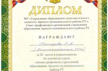 Учитель биологии Шакиров Р.Н. занял 3 место в финальных соревнованиях по шахматам среди членов профсоюза учреждений образования Арского муниципального района РТ.Поздравляем!!!