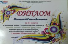 Ученица 7 класса Юсупова Аида награждена Почетной грамотой издательства «Просвещение» при поддержке Министерства науки и образования и науки РФ за размещение рассказа о памятном месте "Обелиск в честь погибших воинов в Великой Отечественной войне."