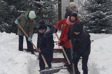 обелиск тирәсен кардан чистарттылар.Укучылар тырышып эшләделәр: обелиск тирәсе ялт итте.Саф һавада бергәләп эшләве бик күңелле булды.