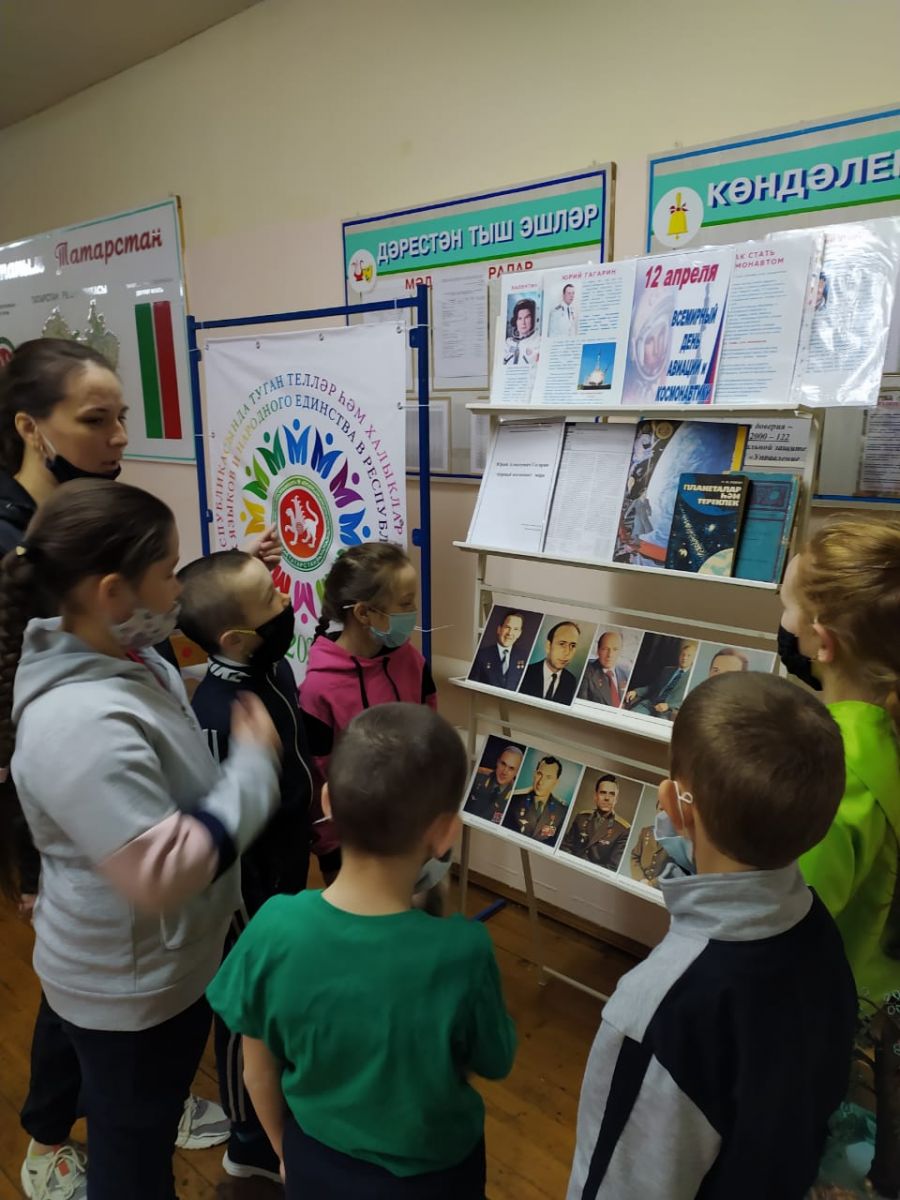 Балалар кешенең космоска беренче очышы һәм гомумән галәм турында мәгълүмат белән таныштылар. Өлкән һәм урта буын Юрий Гагаринга багышланган кызыклы презентация һәм видеоролик карадылар.