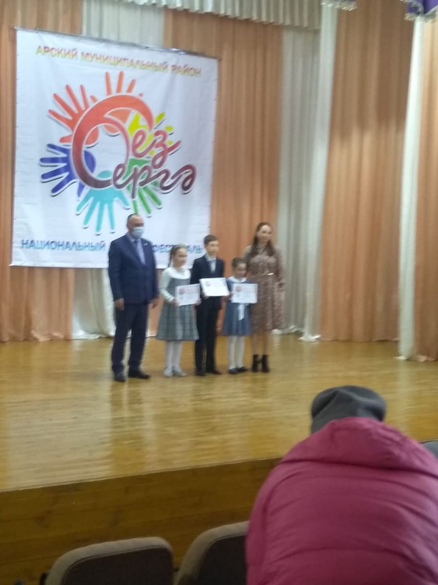 Бүген 24 нче март көнне шәһәребез Арчада Сәнгать мәктәбендә район куләмендә халык иҗаты буенча “Без бергә” балалар милли фестиваленең тантаналы рәвештә котлау кичәсе булып узды. Кичәдә безнең мәктәптән 3 лауреат җиңүчеләребез 8 сыйныф укучысы Кәримов Фәнис һәм физик тәрбия укытучысы Алия Закирова иде.Киләчәктә дә аларга уңышлар теләп калабыз.Җитәкчесе:Кадырова Л.Ф.Сегодня, 24 марта, в Арской школе искусств состоялось торжественное награждение победителей районного детского национального фестиваля народного творчества “Мы вместе”. На вечере присутствовали призеры лауреаты 3 степени нашей школы-ученик 8 класса Каримов Фанис и учитель физической культуры Алия Закирова. Желаем им успехов и в дальнейшем. Руководитель: Кадырова Л. Ф.