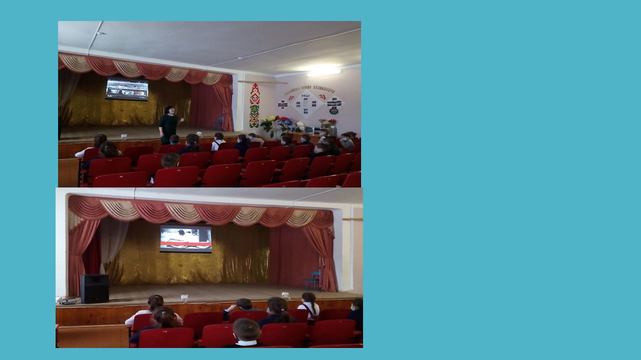 Бүген башлангыч класс укучылары Мәдәният йортында булдылар. Мәдәният йорты җитәкчесе Мухаметгалиева Илсөя апа укучыларга Ленинград блокадасы турында сөйләде һәм видеофильм күрсәтте. -