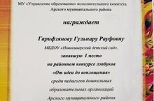 Поздравляем воспитателя Гарифзянову Г.Р., занявшую 1 место на районном конкурсе лэпбуков "От идеи до воплощения"среди педагогов дошкольных образовательных организаций Арского муниципального района.