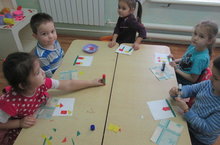 Уртанчылар төркеме балалары үзләренең кисеп ябыштыруга осталыкларын күрсәттеләр. Тәрбиячеләре Л.Н. Фазылзянова кайчы белән сак эш итәргә, төгәл эшләргә өйрәтә аларны. Балалар күңел биреп, тырышып эшлиләр.