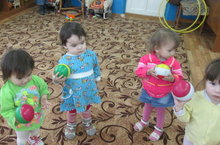 Иң кечкенәләрнең икенче төркемендә хәрәкәтләрне үстерү белем бирү эшчәнлеге бара. Физик культура җитәкчесе иң кечкенәләребез белән дә уртак тел таба. Аларны һәрбер уенга җәлеп итә белә. Балалар бик теләп уйныйлар.
