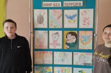 В рамках месячника безопасности воспитатель Сабирова И. Т,. провела конкурс рисунков «Мир без террора. В творческих работах дети отразили свое отношение к терроризму и выразили уважение к ценностям мирной жизни. Оформили стенд из своих рисунков.