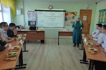 В рамках недели домоводства и труда Хакимова Нурфия Исламгалиевна 15 марта провела мероприятие «Секреты здорового питания». Игра состоялась из трех частей. Участвовали команды 8а и 8б классов: «Колобки» и «Апельсины».