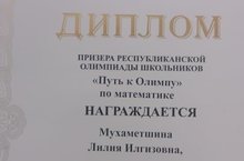 Математика фәненән "Путь к успеху" республика олимпиадасында катнашып,6Б класс укучысы Мухаметшина Л.призер булды.Лилияне һәм математика укытучысы Тухфатуллина Л.Р. чын күңелдән котлыйбыз,аларга уңышлар телибез.