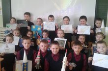Космонавтика көне уңаеннан 1А классында ( класс җитәкчесе Г.Н.Хафизова) рәсем һәм поделкалар конкурсы уздырылды.