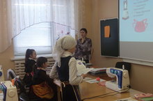 Мәктәптә физкультура,технология атналыгы башланды.Бүген технология укытучысы Хабибуллина Г.Р. 5А классында технологиядән ачык дәрес күрсәтте.Укучылар дәрестә сызым ярдәмендә алъяпкычка материал кисәргә өйрәнделәр.