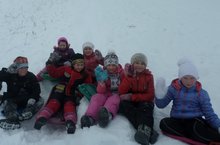 Сөрде башлангыч мәктәбе укучылары каникулда күңелле итеп чана шуалар.