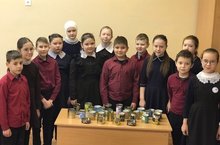 Буген укучылар спецоперациядә катнашучы егетләребез өчен, шәмнәр куяр өчен подсвечник ясарга калай савытлар алып килделәр.