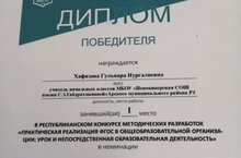 ИРО РТ уздырган методик эшәртмәләр конкурсында катнашып,башлангыч класс укытучысы Хафизова Г.Н. беренче урынны яулады.Аны чын күңелдән котлыйбыз .