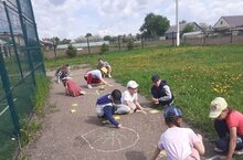 Укучылар саф һавада уйнадылар, "Исәнме, җәй!" темасына асфальтта рәсемнәр ясадылар -
