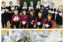 Мәктәп укучылары "Ак чәчәкләр" акциясендә катнашалар.