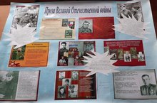 в рамках предметной недели был конкурс стенгазеты «Литературный вестник» по разделам: «Проза военного времени», «Когда пушки палят- муза не молчит», Хроника писательского труда на войне», «Мир искусства времён Великой отечественной войны», Зарубежные писатели и поэты в годы второй мировой войны».Учащиеся заинтересовались сбором материалов времён войны. Иллюстрации, фотографии, заметки в старых газетах и журналах поразила всех и отозвалась великой болью за нашу историю.