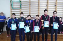 Мәктәпнең гомуми линейкасында хоккей ярышында җиңү яулаган егетләрне котладылар.