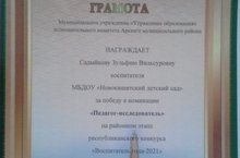 "Воспитатель года - 2021" конкурсында катнашып безнең тәрбиячебез Садыйкова Зөлфия Вилсур кызы "Педагог - исследователь" номинациясендә җиңү яулады. Котлыйбыз, Зөлфия Вилсуровна, киләчәктәдә уңышлар телибез! 22.01.2021