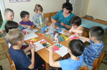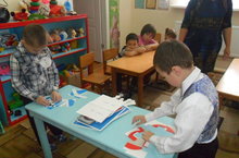 Бездә бүген кисеп-ябыштыру занятиесе. Без тырыша-тырыша эшлибез, матур килеп чыккач үзебезгә дә күңелле ! 02.11.2015