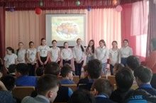 Бәйрәм уңаеннан 8 нче класс укучылары Ибрагимова Г. Р. җитәкчелегендә эчтәлекле, матур җырларга, шигырьләргә, үзенчәлекле биюләргә бай булган концерт программасы күрсәттеләр.