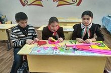 Мобильные бригады участников проекта заранее готовились к этой акции. Они выпустили поздравительную газету, сделали маленькие буклеты и поздравили своих учителей, тех.персонала , воспитателей детского сада и поваров с днем матери. Учителям было приятно слышать искренние поздравления своих любимых учеников.