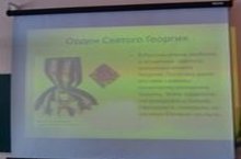 Башлангыч класслар укытучысы Г.Н.Фазылҗанова "Георгиев ленталары" көнлеге уңаеннан укучыларны бу лентаның тарихы белән таныштырды. Эчтэлекле, мавыктыргыч презентация күрсәтте.