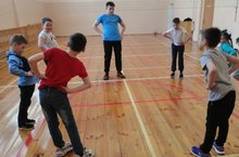 Укучыларыбыз тәнәфесләрдә спортзалда волейбол уйнарга яраталар.