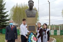 Бүген авыл уртасында урнашкан һәйкәлгә һәм мәктәбебез ишек алдында куелган Советлар Союзы Герое генерал-лейтенант якташыбыз Гани Биккенә улы Сафиуллин бюстына чәчәкләр салынды.