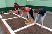 Мәктәбебез территориясе читарту, яшелләндерү эшләре дәвам итә.