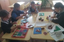 4 нче сыйныф укучылары технология дәресендә табигый материаллардан аппликация ясадылар.