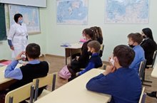 Авылыбыз фельдшеры Шәрипова Люция Камиловна укучылар белән гриппка, вируслы авыруларга каршы тору, профилактик чаралар, аларны үтәү турында әңгәмә үткәрде.