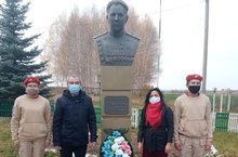 Мәктәбебез ишек алдына куелган герой бюстына да венок салынды.