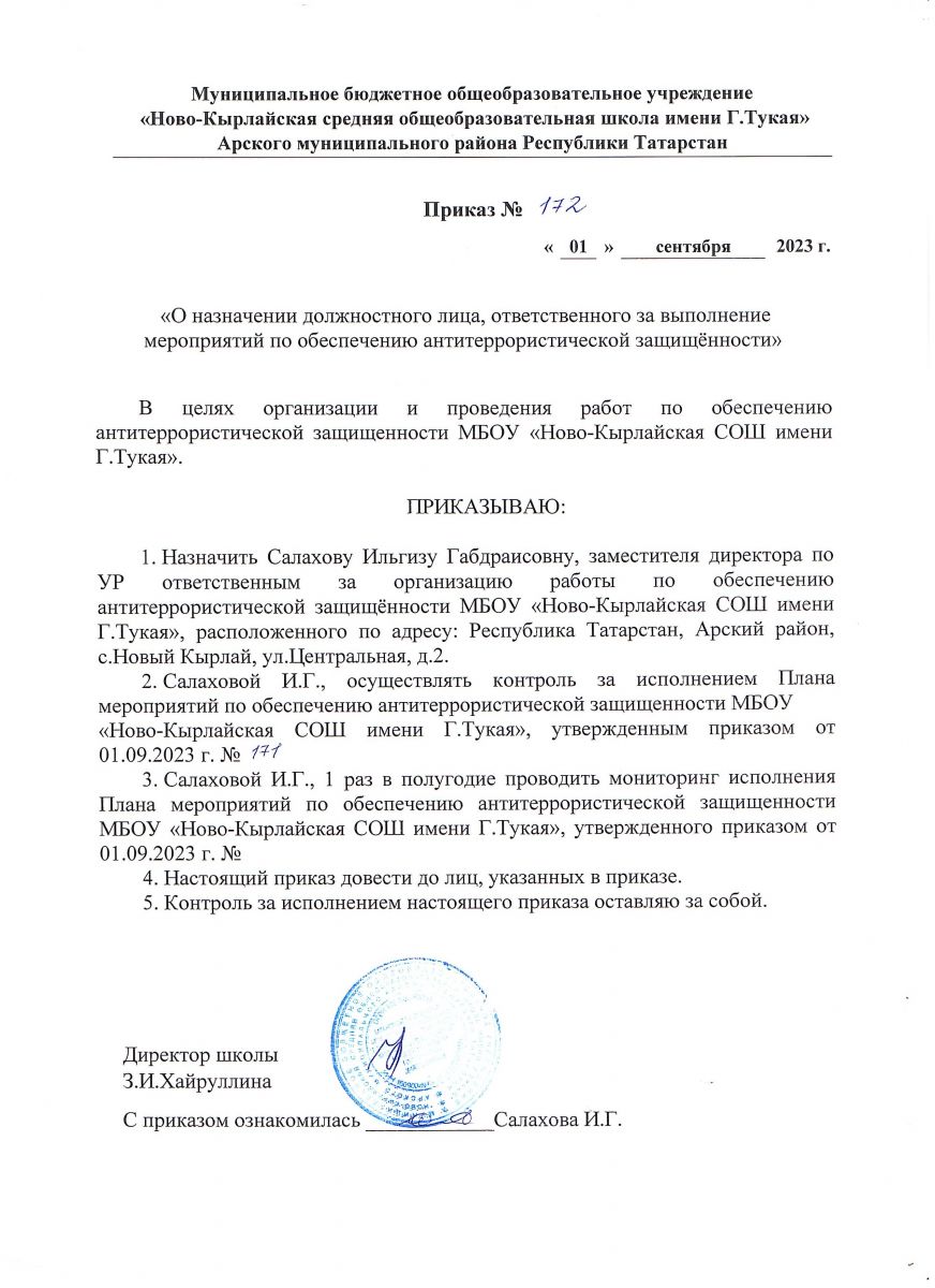Положение о пропускном и внутриобъектовом режимах в МБОУ «Ново-Кырлайская СОШ имени Г.Тукая»