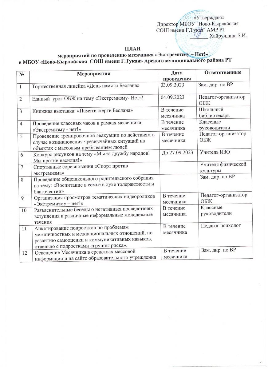 План мероприятий по обеспечению антитеррористической защищенности объекта (территории)