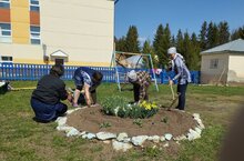 Санитар - экологик икеайлыкта катнашып, бакчабыз территориясенә чәчәкләр утырттык. 28.04.2023