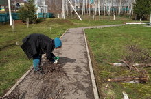Вновь заработал детский сад.Занимаемся уборкой территории детского сада 13.05.2020